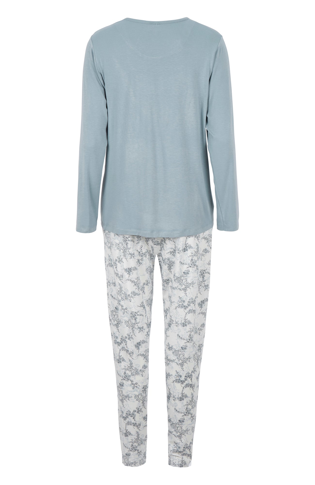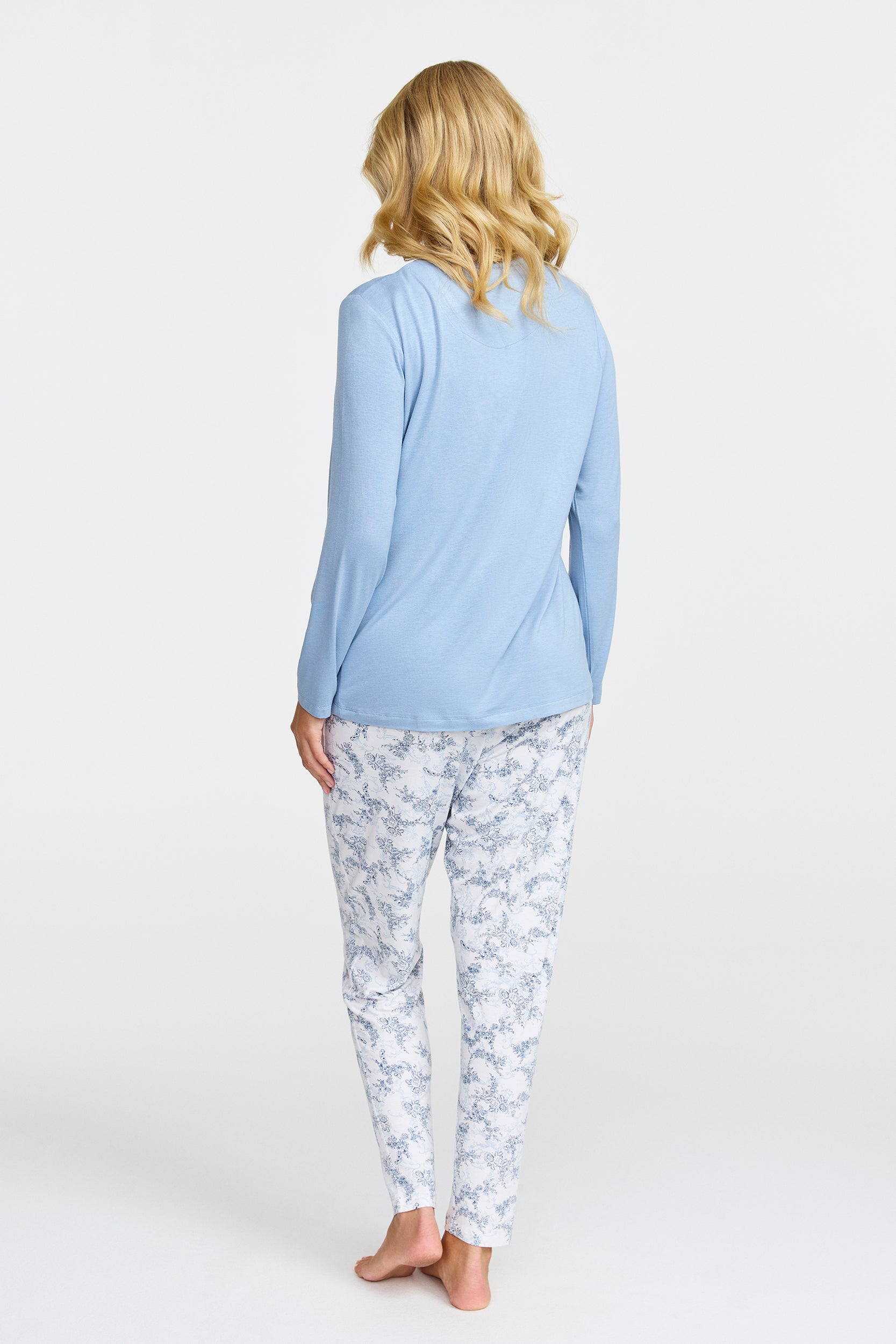 Upplev en ny nivå av komfort med vår härliga pyjamas gjord av mjuk bambuviskos som andas, designad med en elegant rund hals och långa ärmar. De mönstrade jerseybyxorna erbjuder både stil och bekvämlighet med sina dekorativa veck, praktiska fickor och ett elastiskt midjeband som passar perfekt till din form.
