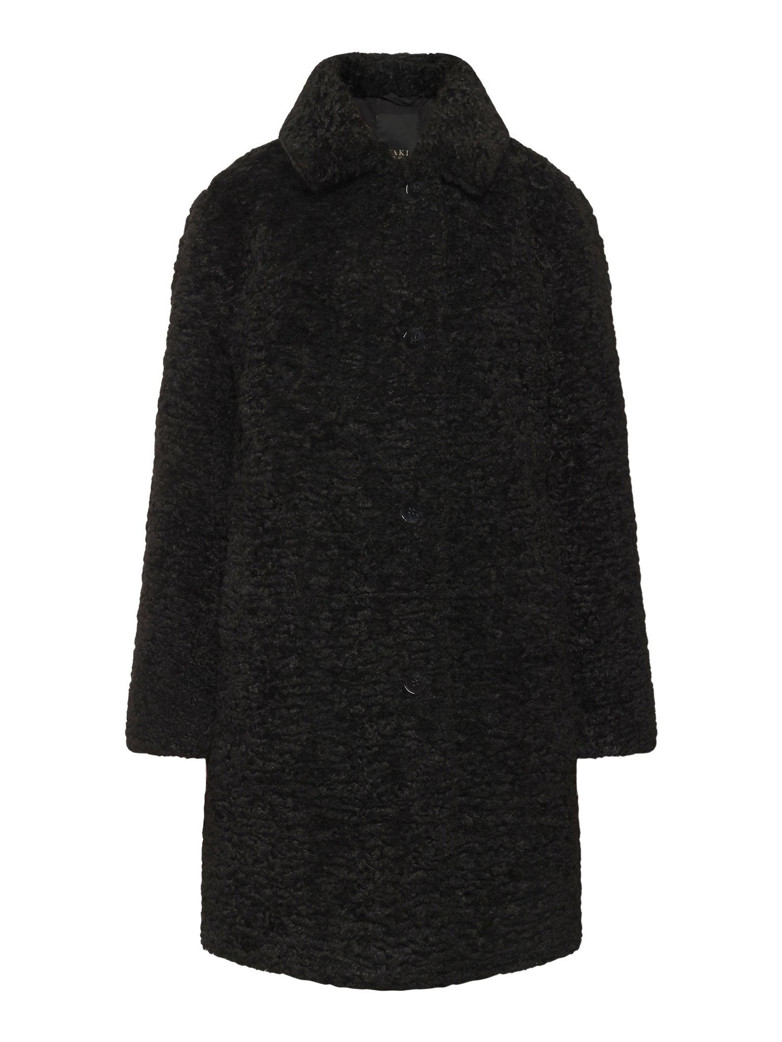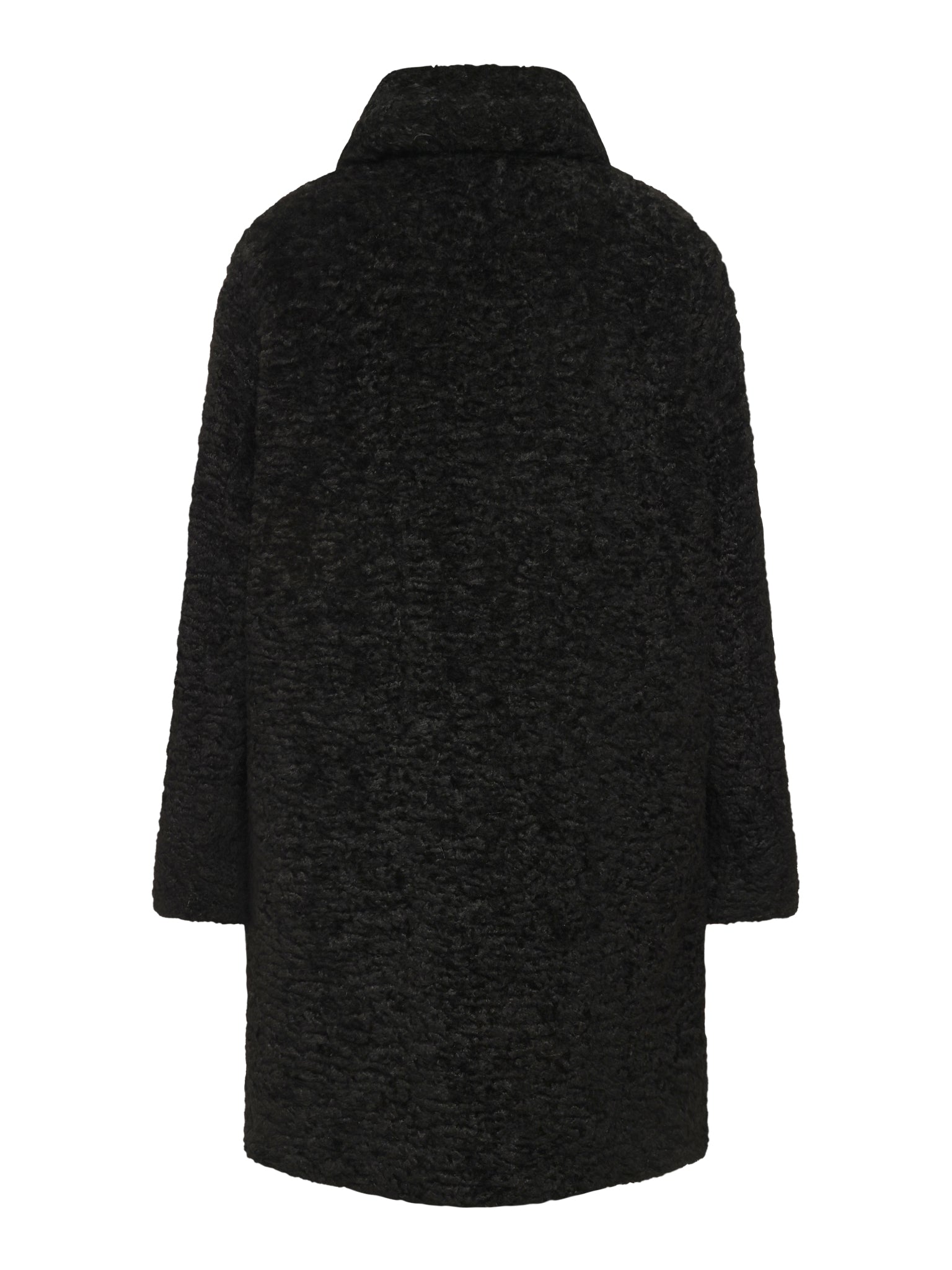 Elegant lång jacka i mjuk fuskpäls. Genomtänkt design med detaljer som knäppning framtill, två stora framfickor och en skjortkrage. Denna jacka är det perfekta plagget för en elegant look både dagtid och nattetid.